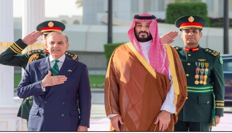 ولی عہد شہزادہ محمد بن سلمان کی دعوت پر وزیراعظم شہباز شریف مملکت سعودی عرب کے سرکاری دورے پر اسلام آباد سے ریاض پہنچے جہاں سعودی F-15 لڑاکا طیاروں نے وزیراعظم کا شاندار استقبال کیا، دونوں رہنماؤں نے دفاعی معاہدے پر دستخط کردیے جس کا مقصد پاکستان اور سعودی عرب کی خودمختاری و سالمیت میں ایک دوسرے کا ساتھ دینا ہے۔