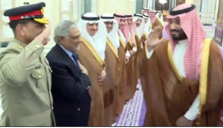 ریاض(مسائل نیوز) سعودی عرب کے دورے کے دوران سعودی شاہی دیوان، قصر یمامہ میں تعارفی تقریب کے دوران سعودی ولی عہد محمد بن سلمان نے بھی پاکستان آرمی کے سربراہ فیلڈمارشل عاصم منیر کو سیلوٹ کیا جس کی ویڈیو بھی سامنے آگئی۔