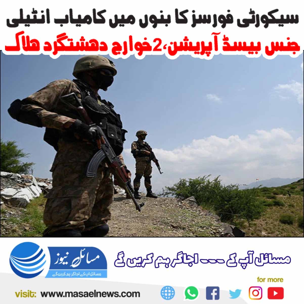 سیکیورٹی فورسز کا بنوں میں کامیاب انٹیلی جنس بیسڈ آپریشن، 2خوارج دہشت گرد ہلاک