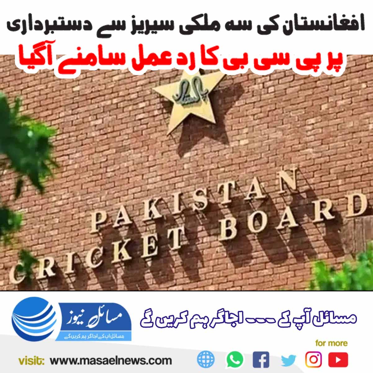 لاہور(مسائل نیوز)افغانستان کے سہ ملکی سیریز میں شرکت سے انکار پر پی سی بی کا ردعمل بھی سامنے آگیا۔