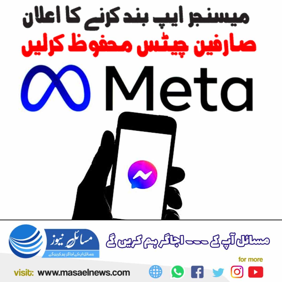 نیویارک(مسائل نیوز)فیس بک کی مالک کمپنی میٹا نے میسنجر کی میک اور ونڈوز کے لیے ڈیسک ٹاپ ایپلی کیشنز 15 دسمبر 2025 سے بند کرنے کا اعلان کیا ہے۔