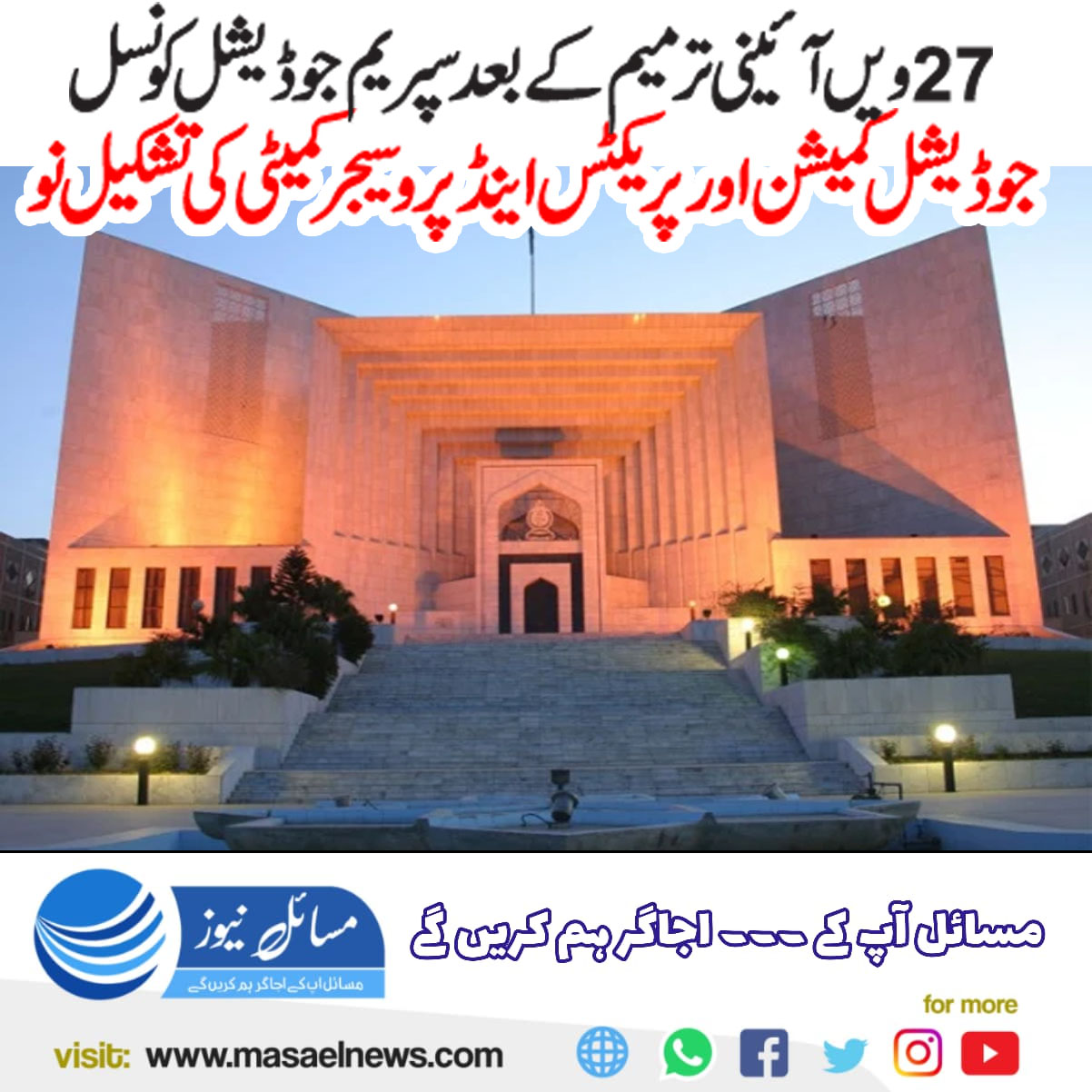 اسلام آباد(مسائل نیوز)27ویں آئینی ترمیم کے نتیجے میں سپریم جوڈیشل کونسل، جوڈیشل کمیشن اور پریکٹس اینڈ پروسیجر کمیٹی کی تشکیل نو کردی گئی۔