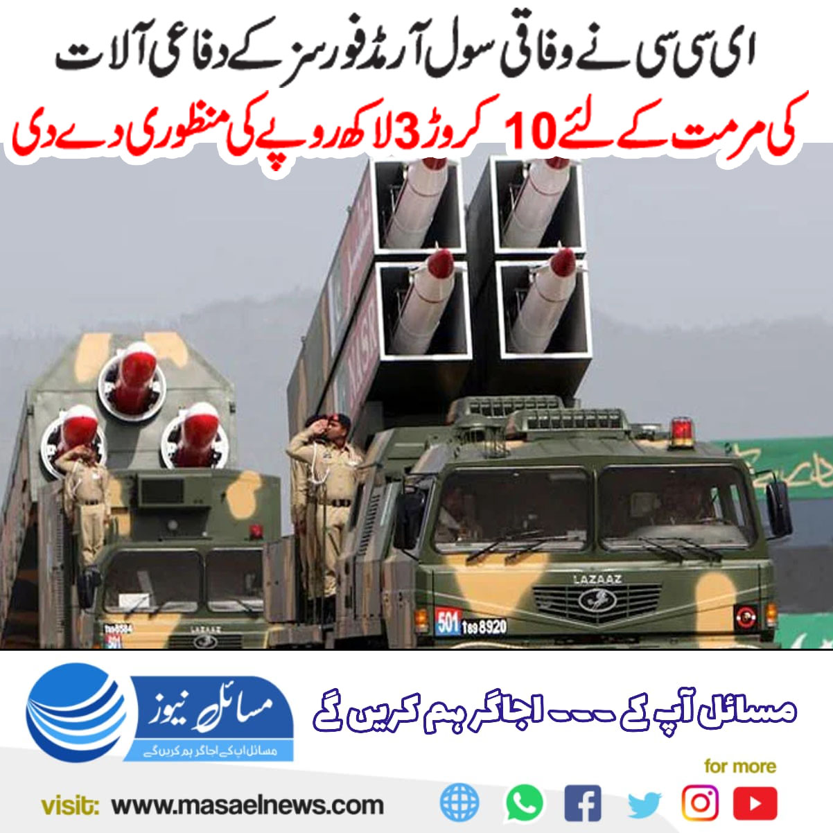 ای سی سی نے وفاقی سول آرمڈ فورسزکے دفاعی آلات کی مرمت کیلئے 10 کروڑ 3 لاکھ روپے کی منظوری دیدی