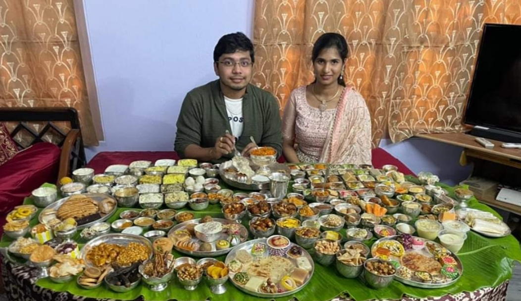 آندھرا پردیش (مسائل نیوز) آندھرا پردیش کے ایک خاندان نے مکرسکرانتی کی تقریب میں گھر میں دعوت کا اہتمام کیا، اس خاندان نے اپنے داماد کے لئے کی گئی دعوت میں 379 ڈشز بنائیں اور سوشل میڈیا پر وائرل ہو گیا۔ اس میں ملکی و غیر ملکی کھانے شامل تھے، اس دعوت کے لئے ایک ہفتہ قبل ہی کھانے بنانے کی تیاری شروع کر دی گئی تھی اور یہ تیاری دعوت سے ایک روز قبل تک جاری رہی۔