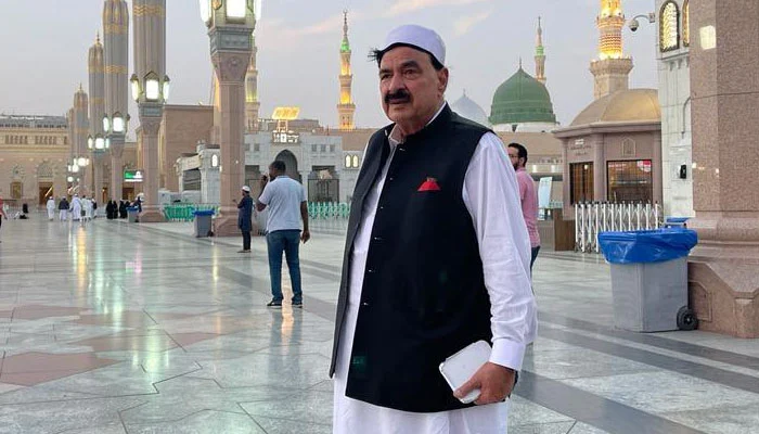 شیخ رشید نے روضہ رسولﷺ پر حاضری کی تصویر شیئر کردی