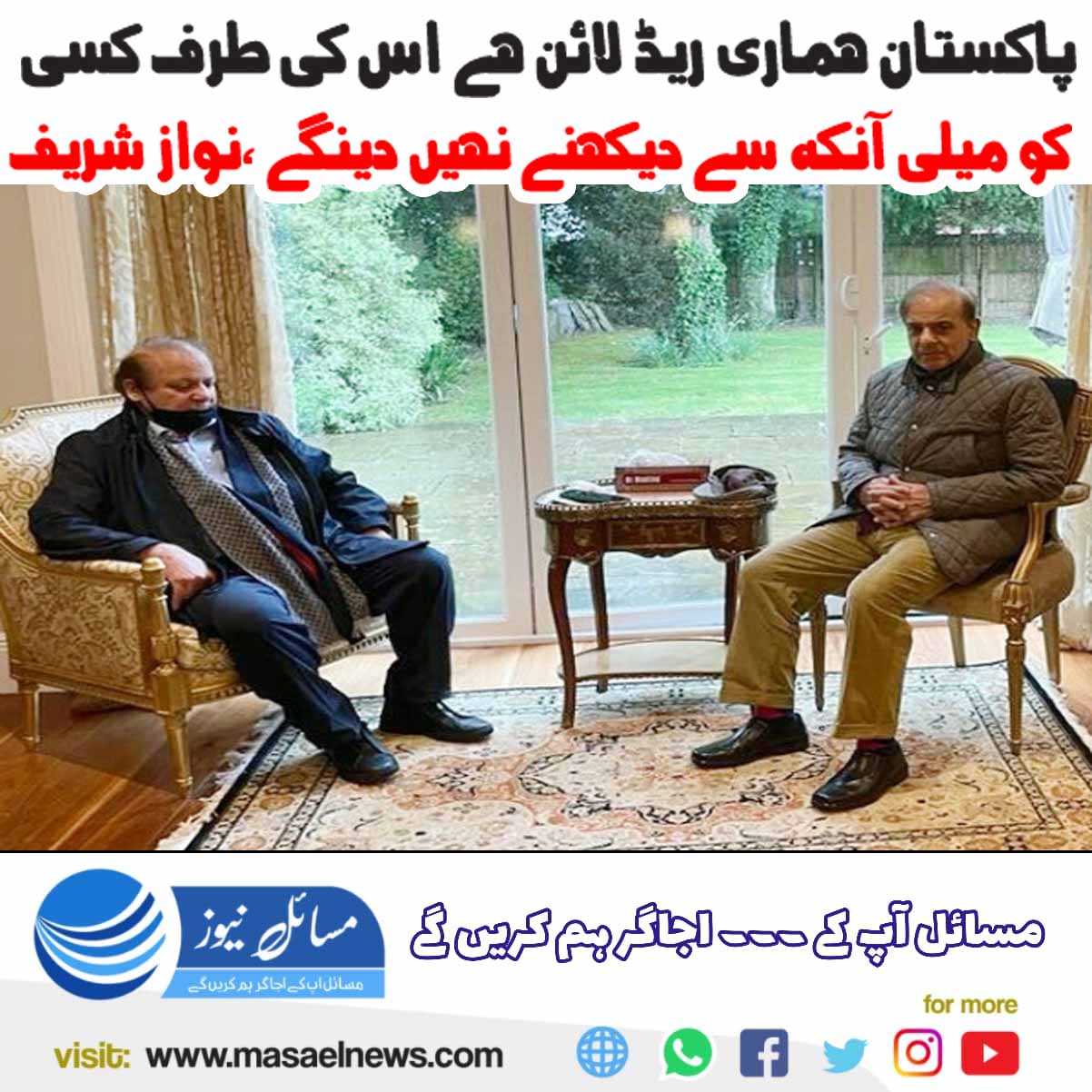 لاہور(مسائل نیوز)مسلم لیگ (ن) کے صدر اور سابق وزیر اعظم نواز شریف نے کہا ہے کہ پاکستان ہماری ریڈ لائن ہے، پاکستان کی طرف کسی کو بھی میلی آنکھ سے دیکھنے نہیں دیں گے۔