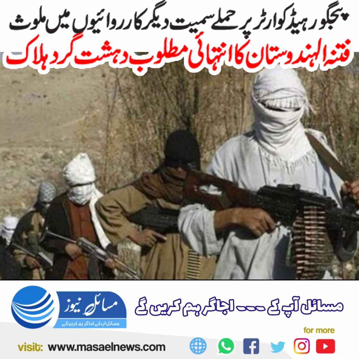 پنجگور ہیڈکوارٹر پرحملےسمیت دیگر کارروائیوں میں ملوث فتنۃ الہندوستان کا انتہائی مطلوب دہشت گرد ہلاک