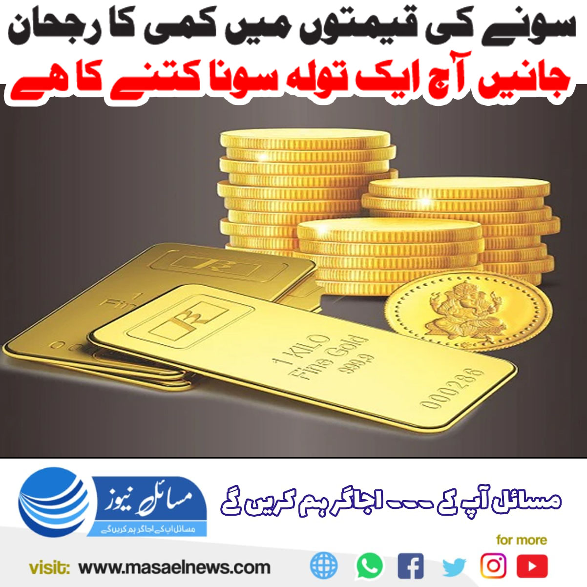 کراچی (مسائل نیوز)پاکستان کی مقامی صرافہ مارکیٹس میں 19 نومبر 2025 بروز بدھ 24 قیراط فی تولہ سونا 4 لاکھ 23 ہزار 662 روپے میں بیچا اور خریدا جا ارہا ہے جبکہ یہ نرخ سپ پہر 3 بجے تک کار آمد رہے گے جس کے بعد آل پاکستان صرافہ جیمز اینڈ جیولرز ایسوسی ایشن کی جانب سے نئے ریٹس جاری کیے جائیں گے۔