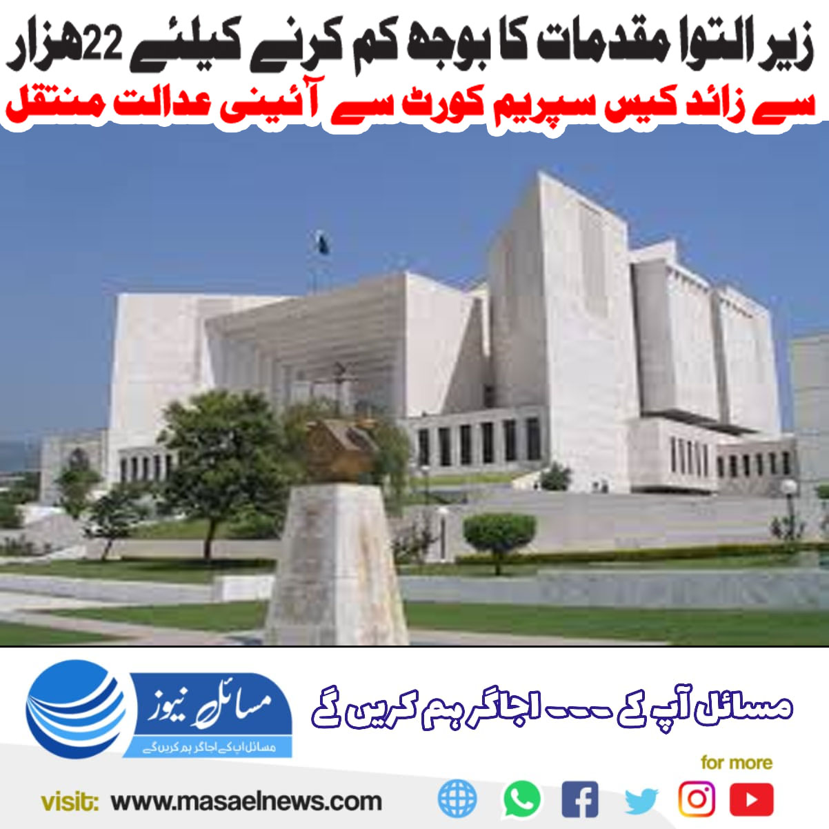زیر التوا مقدمات کا بوجھ کم کرنے کے لئے 22ہزار سے زائد کیسز سپریم کورٹ سے آئینی عدالت منتقل