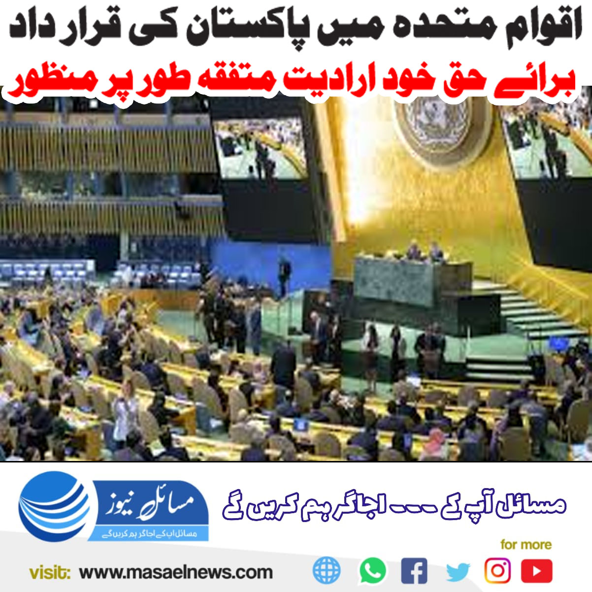اقوام متحدہ میں پاکستان کی قرارداد برائے حق خود ارادیت متفقہ طور پر منظور