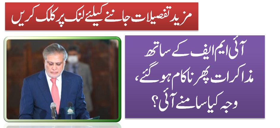 اسلام آباد وفاقی وزیر خزانہ اسحاق ڈار اور معاشی ٹیم کے آئی ایم ایف کے ساتھ ہونے والے تازہ مذاکرات پھر ناکام ہو گئے۔