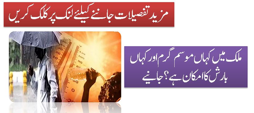 ملک میں کہاں موسم گرم اورکہاں بارش کا امکان ہے؟جانیے
