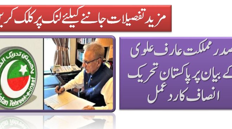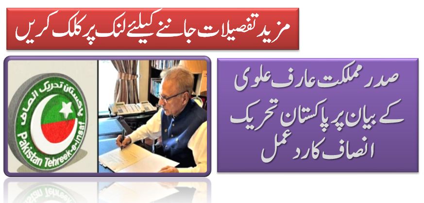 صدرمملکت عارف علوی کے بیان پر پاکستان تحریک انصاف کا ردعمل