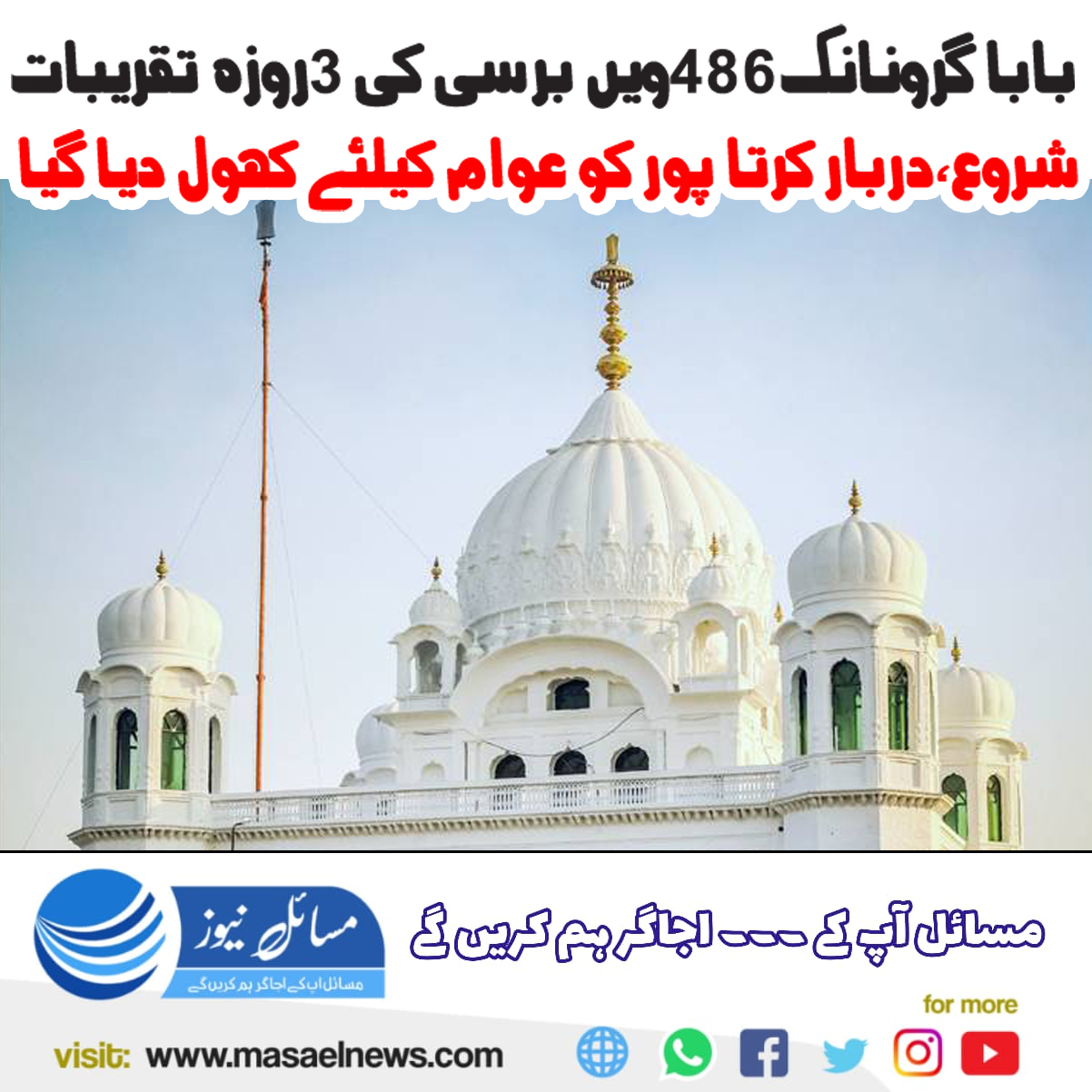 تفصیلات کے مطابق بابا گرو نانک کی 486 ویں برسی کی 3 روزہ تقریبات کا آغاز آج سے ہو گیا ہے ۔ دربار کرتار پور کو عوام کے لیے کھول دیا گیا ہے ۔بابا گرو نانک کی برسی کی اختتامی تقریب 22 ستمبر کو ہوگی۔