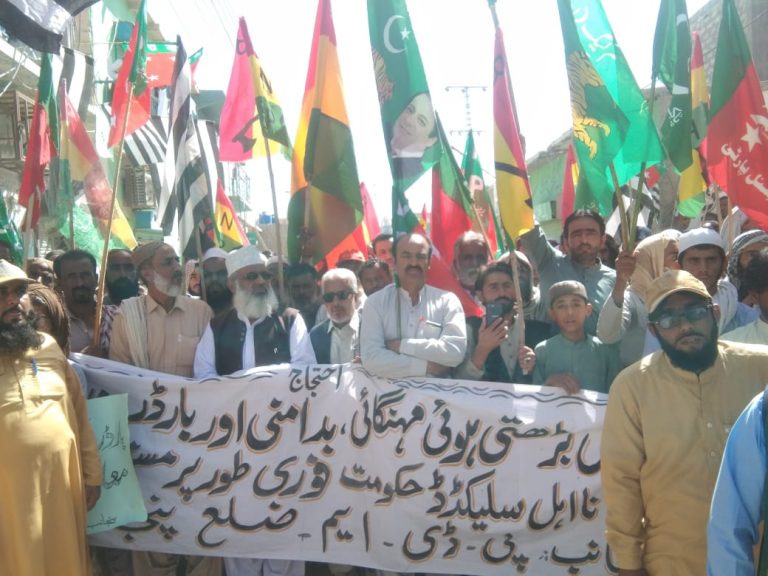 پنجگور(مسائل نیوز)پنجگور ملک کے دیگر حصوں کی طرح پی ڈی ایم کی کال پر مہنگائی بے روزگاری بدامنی بارڈر کی بندش بجلی اور گیس اور تیل کی قیمتوں میں اضافہ کے خلاف ریلی اور مظاہرہ ریلی کی قیادت پی ڈی ایم پنجگور کے مقامی قیادت میر نزیراحمد بلوچ حافظ محمد اعظم ۔حاجی عبدالعزیز بلوچ ۔ حاجی صالح محمد بلوچ اشرف ساگر پھلین بلوچ کفایت اللہ بلوچ حاجی افتخار بلوچ نے کی ریلی کے شرکاء نے پارٹی کے جھنڈے بارڈر بندش مہنگاہی بے روزگاری کے خلاف پلے کارڈ اٹھا رکھے تھے اور حکومت کے خلاف شدید نعرہ بازی کی ریلی بازاد اور مختلف شاہروں پر ہوتے ہوئے بسم اللہ چوک پر جلسہ کی شکل اختیار کی گئی جلسے سے پی ڈی ایم کے رہنماء بی این پی کے مرکزی جوائنٹ سکیرٹری میر نزیراحمد بلوچ جمعیت علماء اسلام کے ضلعی امیر حافظ محمد اعظم بلوچ نیشنل پارٹی کے بزرگ رہنماء حاجی صالح محمد بلوچ مسلم لیک ن کے ڈویژنل صدر اشرف ساگر بی این پی کے کفایت اللہ بلوچ انجمن تاجران کے صدر حاجی خلیل احمد دھانی سول سوسائٹی کے کنوینر حاجی افتخار بلوچ نے خطاب کرتے ہوئے کہا کہ مہنگاہی بے روزگاری تیل گیس کے بڑھتے ہوئے اضافے سے عوام خود کشیوں پر مجبور ہوکر زندگی کا خاتمہ کررہے ہیں عوام دو وقت کی روٹی کیلئے ترس رہے ہیں مگر حکومت عالمی قوتوں اور ائی ایم ایف کے چھنگل میں پھنس کر عوام کو لوٹ کر خود کرسی کا مزہ لےرہے ہیں ۔انہوں نے کہا کہ پنجگور خصوصا مکران کے عوام کی زرائع معاش کا واحد زرائع بارڈر ہے لیکن موجودہ حکومت نے اپنے عوام کش پالیسیوں کو برقرار رکھتے ہوئے بارڈر پر نئی پالیسی بنا کر عوام کیلئے کاروبار اور روزگار کا دروازہ بند کردیا ہے انہوں نے کہا کہ عمران خان نے عوام سے جو وعدہ کئے ہیں وہ سب جھوٹ اور نعرے تک محدود رہے ایک کروڑ نوکری دینے والے عمران خان ہر روز سینکڑوں کی تعداد میں عوام کو روزگار کاروبار چھین کر عوام کو فاقوں پر مجبور کررہی ہے انہوں نے کہا کہ پنجگور کی بدامن سے روزلاشیں گررہی ہیں لیکن حکومت اور اداروں کو عوام سے کوئی سروکار نہیں ہے عوام سے روزگار کاروبار چھین کر نان شبینہ کا محتاج بنا دیا ہے ۔لیکن اب موجودہ حکومت کے دن گنے جا چکے ہیں ۔ آج پورے ملک میں عوام حکومت کے خلاف سراپہ احتجاج ہیں اور سڑکوں پر نکل آئے ہیں ۔ اس ظالم اور جابر حکومت کے خاتمے تک احتجاج کا سلسلہ جاری رکھیں گے ۔