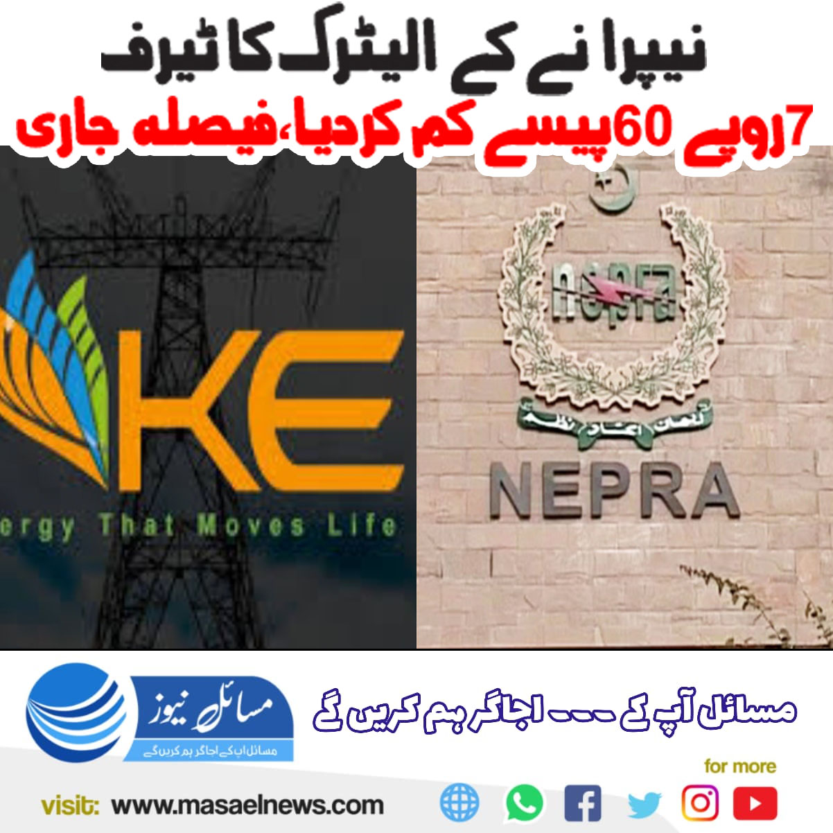 نیپرا نےکے الیکٹرک کا ٹیرف 7 روپے 60 پیسے کم کردیا، فیصلہ جاری