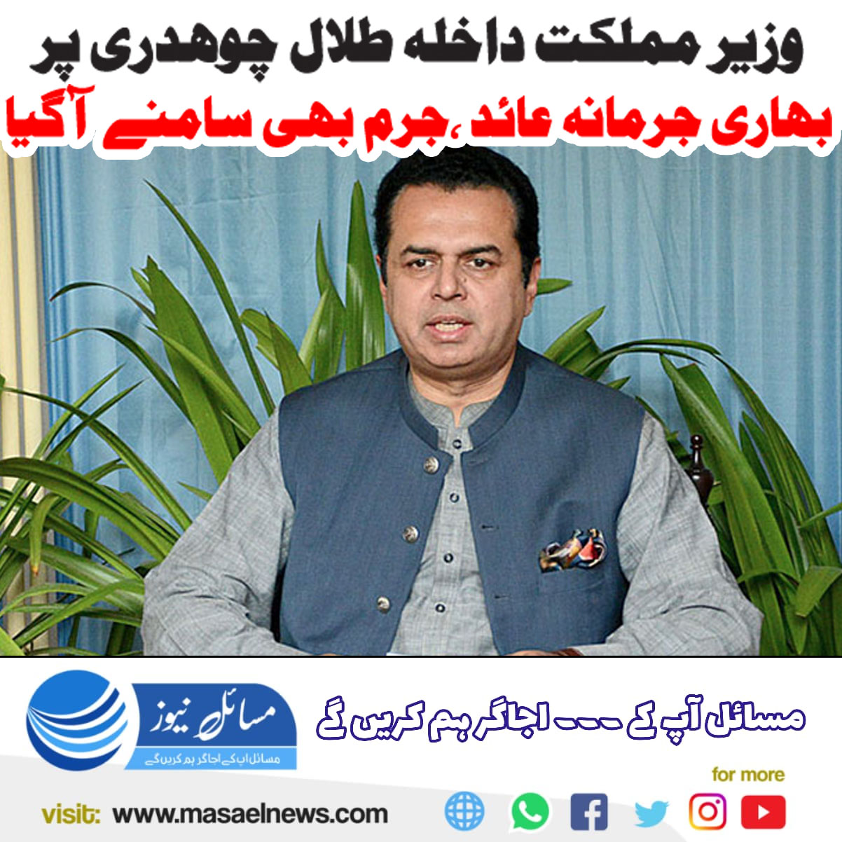 وزیرمملکت داخلہ طلال چوہدری پر بھاری جرمانہ عائد؛ جرم بھی سامنے آگیا