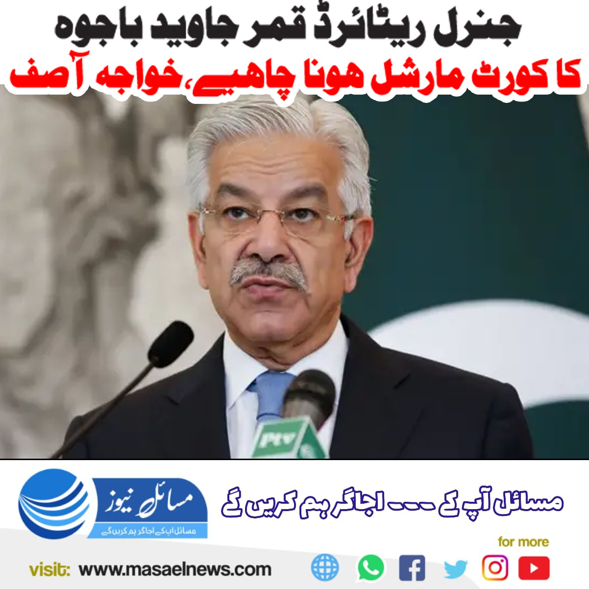 جنرل ریٹائرڈقمر جاوید باجوہ کا کورٹ مارشل ہونا چاہیے ، خواجہ آصف