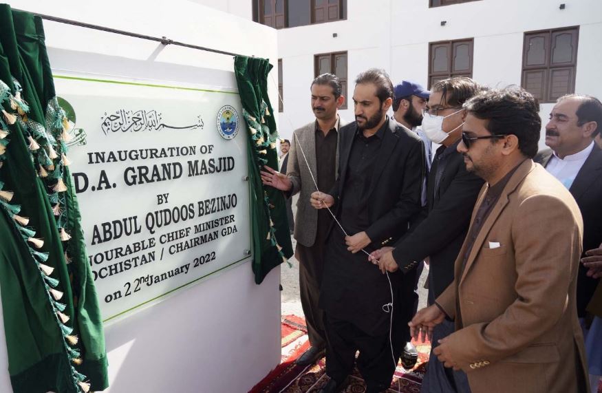 گوادر(ویب ڈیسک) وزیراعلیٰ بلوچستان میر عبدالقدوس بزنجو نے گوادر میں ادادرہ ترقیات گوادر کے تحت تعمیر ہونے والی گرینڈ جامع مسجد کا افتتاح کیا۔ مذکورہ مسجد 122ملین روپے کی لاگت سے تعمیر کی گئی ہے جس میں سات ہزار افراد بیک وقت نماز ادا سکتے ہیں