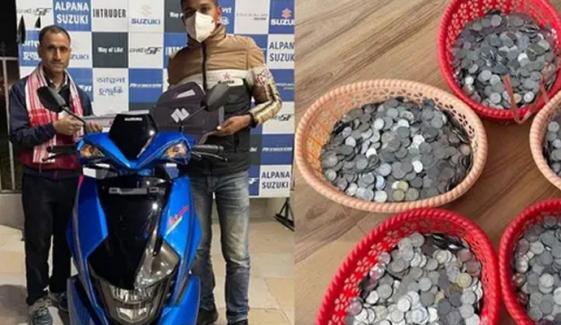 شہری نے ڈھیروں سکے جمع کرکے اسکوٹر خرید لی