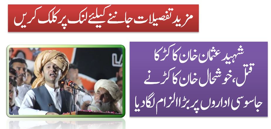 شہید عثمان خان کاکڑ کا قتل،خوشحال خان کاکڑ نے جاسوسی اداروں پر بڑا الزام لگادیا