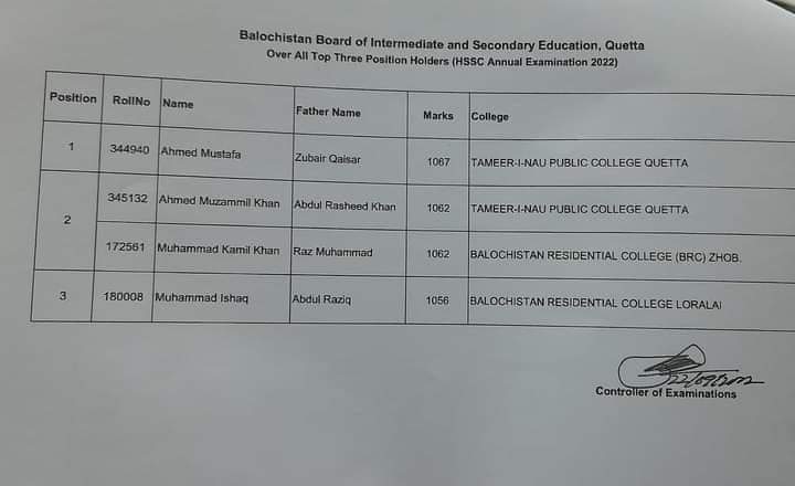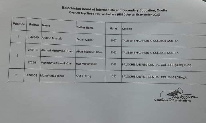 […] (مسائل نیوز) بلوچستان بورڈ آف انٹرمیڈیٹ اینڈ سیکنڈری ایجوکیشن کوئٹہ کے چیئرمین اعجاز احمد بلوچ ،کنٹرولر […]