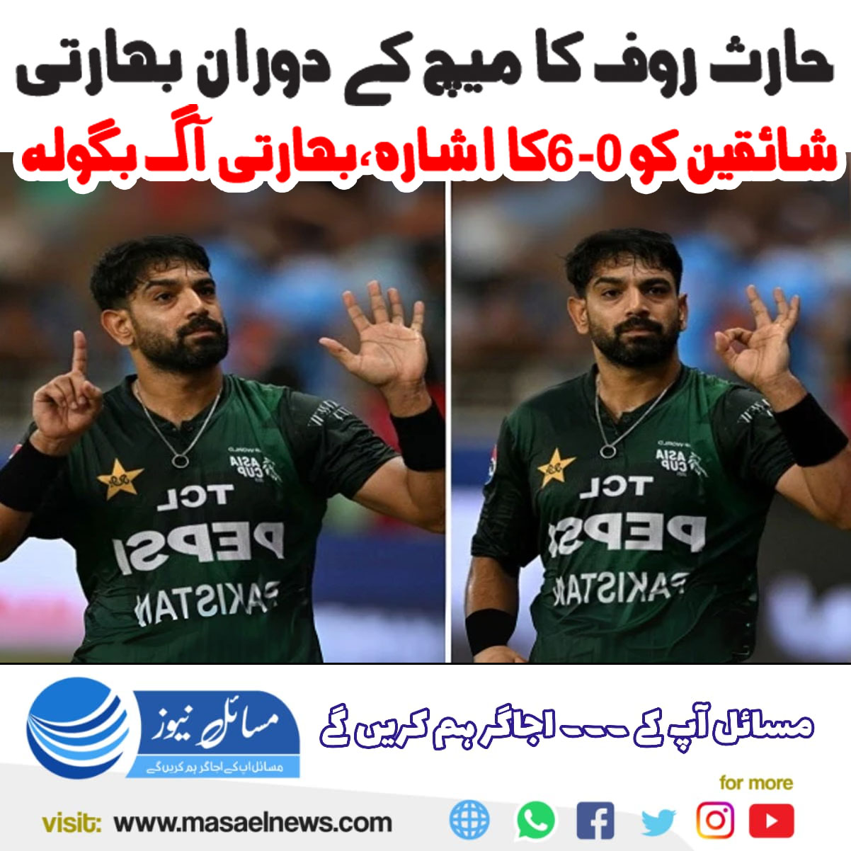 حارث رؤف کا میچ کے دوران بھارتی شائقین کو “0-6” کا اشارہ، بھارتی آگ بگولہ