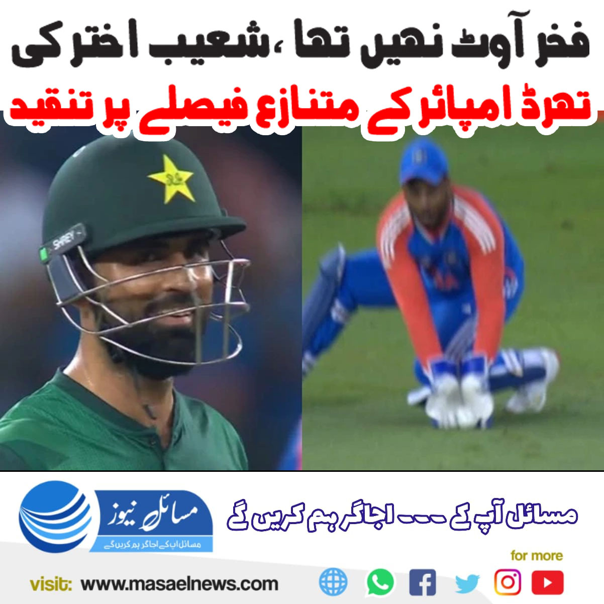 شعیب اختر نے ٹی وی شو میں میچ کے بعد گفتگو کرتے ہوئے کہا کہ „فخر آؤٹ نہیں تھا۔ ڈاؤٹ کا فائدہ اُسے ملنا چاہیے تھا۔