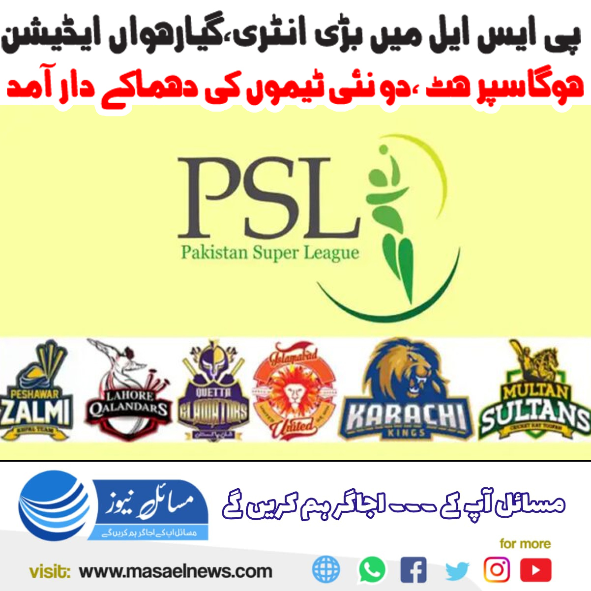پی ایس ایل میں بڑی انٹری، گیارہواں ایڈیشن ہوگا سپر ہِٹ، دو نئی ٹیموں کی دھماکے دار آمد
