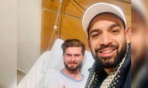 لاہور (مسائل نیوز) پاکستان کرکٹ ٹیم کے فاسٹ بولر حارث رئوف اپینڈکس کے آپریشن کی وجہ سے ہسپتال میں زیر علاج فاسٹ بولر شاہین شاہ آفریدی سے ملنے پہنچ گئے ۔ سماجی رابطے کی ویب سائٹ ٹوئٹر پر حارث رئوف نے شاہین شاہ آفریدی کے ساتھ ہسپتال میں لی گئی تصویر شیئر کی ۔حارث رئوف نے شاہین شاہ آفریدی کو ٹائیگر اور چمپئن کے قرار دیتے ہوئے کہا کہ آپ جلد ٹھیک ہو جائیں گے۔اپنے پیغام میں حارث رئوف نے کہا کہ ایک بھائی کی طرح میں ہمیشہ آپ کے ساتھ ہوں۔واضح رہے کہ دو روز قبل شاہین شاہ آفریدی نے سماجی رابطے کی ویب سائٹ ٹوئٹر پر اسپتال سے لی گئی تصویر شیئر کی تھی۔شاہین شاہ آفریدی نے تصویر کے ساتھ جاری کیے گئے پیغام میں کہا تھاکہ آج اپینڈکس کا آپریشن ہوا ہے لیکن الحمدلِلہ بہتر محسوس کر رہا ہوں۔
