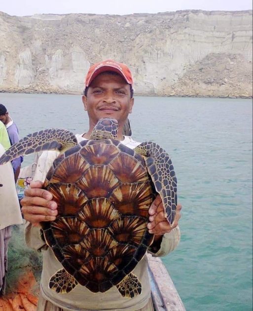 گوادر، غلطی سے پکڑا گیا نایاب کچھوا مچھیروں نے واپس سمندر میں چھوڑ دیا۔