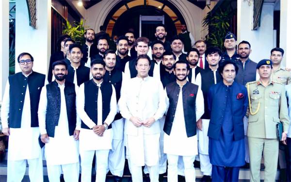 وزیر اعظم عمران خان نے میگا ایونٹ کے لئے قومی کرکٹرز کی حوصلہ افزائی کی اور کرکٹ کی موجودہ صورت حال پر بھی تبادلہ خیال کیا۔ وزیر اعظم سے ملاقات کے موقع پر قومی کرکٹرز نے سفید قیمض شلوار اور گہرے نیلے رنگ کی ویسٹ کوٹ زیب تن کررکھی تھی۔