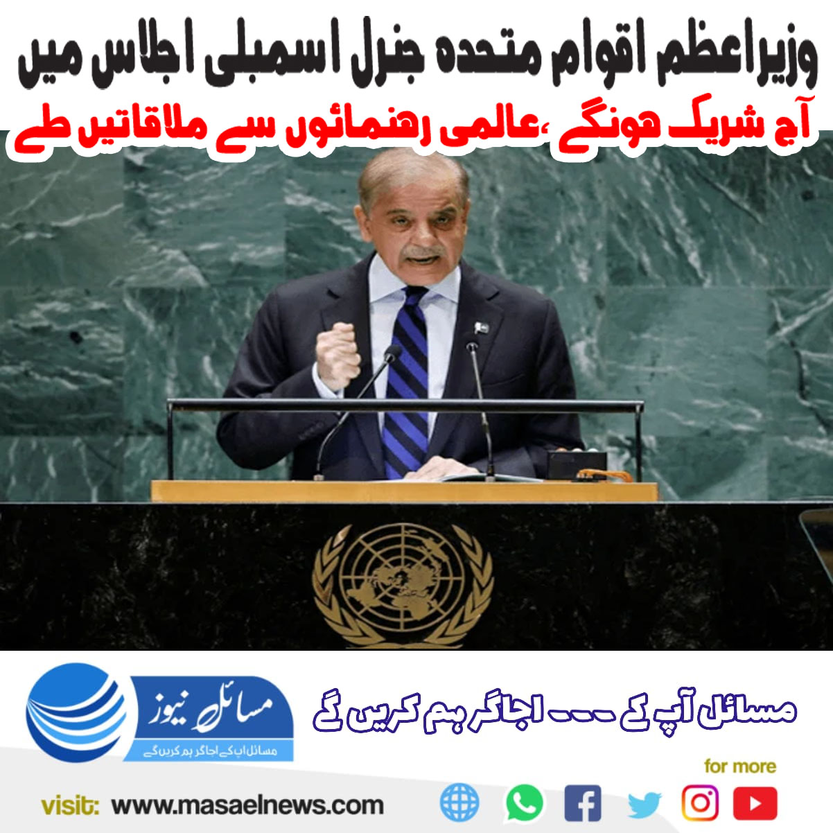 اقوام متحدہ (مسائل نیوز)وزیرِاعظم محمد شہباز شریف اقوام متحدہ جنرل اسمبلی کے 80ویں اجلاس میں آج پاکستان کی نمائندگی کریں گے۔