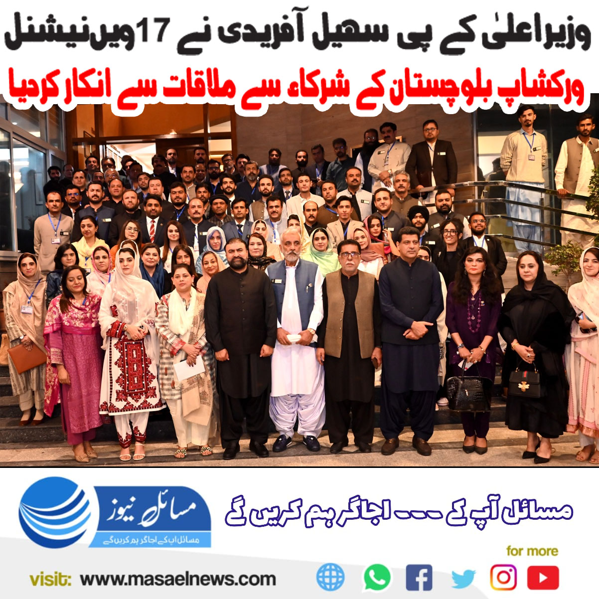 پشاور: وزیراعلیٰ خیبرپختونخوا سہیل آفریدی نے 17ویں نیشنل ورکشاپ بلوچستان کے شرکا سے ملاقات سے انکار کردیا۔