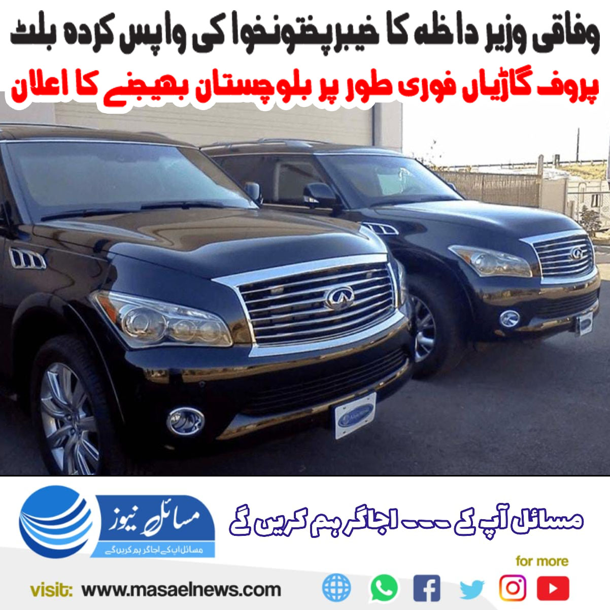 یہ اعلان اس تناظر میں آیا ہے کہ گزشتہ روز وزیراعلیٰ سرفراز بگٹی نے وفاقی وزیر داخلہ سے اپیل کی تھی کہ اگر خیبرپختونخوا حکومت ان بلٹ پروف گاڑیوں کو لینے سے انکار کر رہی ہے تو انہیں حکومتِ بلوچستان کو منتقل کر دیا جائے تاکہ صوبہ دہشت گردی کے خلاف بہتر انداز میں مقابلہ کر سکے۔