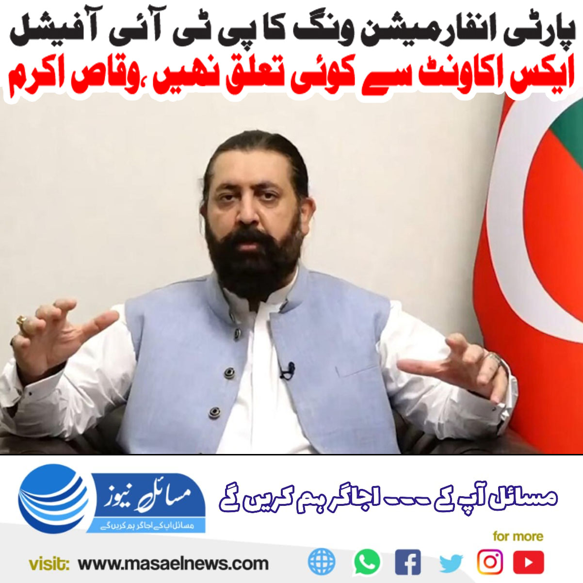 پارٹی انفارمیشن ونگ کا پی ٹی آئی آفیشل ایکس اکاؤنٹ سے کوئی تعلق نہیں، شیخ وقاص اکرم