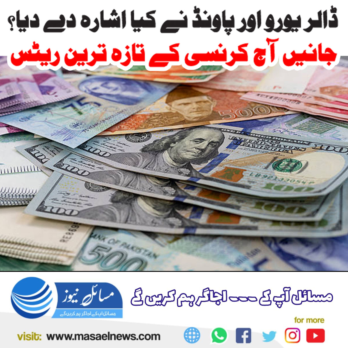 یورو کی بینک خرید 323 روپے 65 پیسے اور فروخت 324 روپے 22 پیسے رہی۔ سعودی ریال 74 روپے 81 پیسے میں خریدا اور 74 روپے 94 پیسے میں فروخت کیا گیا۔