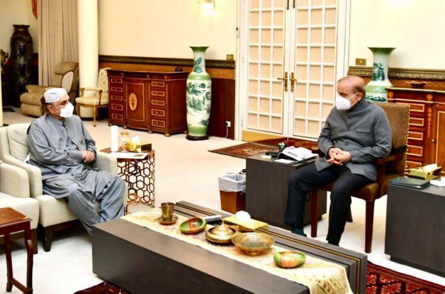 دنیا نیوز کے مطابق دونوں رہنماﺅں نے ملاقات کے دوران صوبائی اسمبلیوں کے انتخابات کے حوالے سے چیف جسٹس عمر عطا بندیال کے از خود نوٹس پر تبادلہ خیال کیا ہے ،اس موقع پر کیس کی سماعت کرنے والے بینچ سے متعلق بھی گفتگو کی گئی، ملاقات میں فیصلہ کیا گیا ہے کہ اتحادی جماعتیں سپریم کورٹ میں اپنا موقف بھرپور طریقے سے پیش کریں گی۔وزیر اعظم اور سابق صدر کے مابین ہونیوالی ملاقات میں ملک کی سیاسی اور معاشی صورتحال پر بھی غور کیا گیا ۔