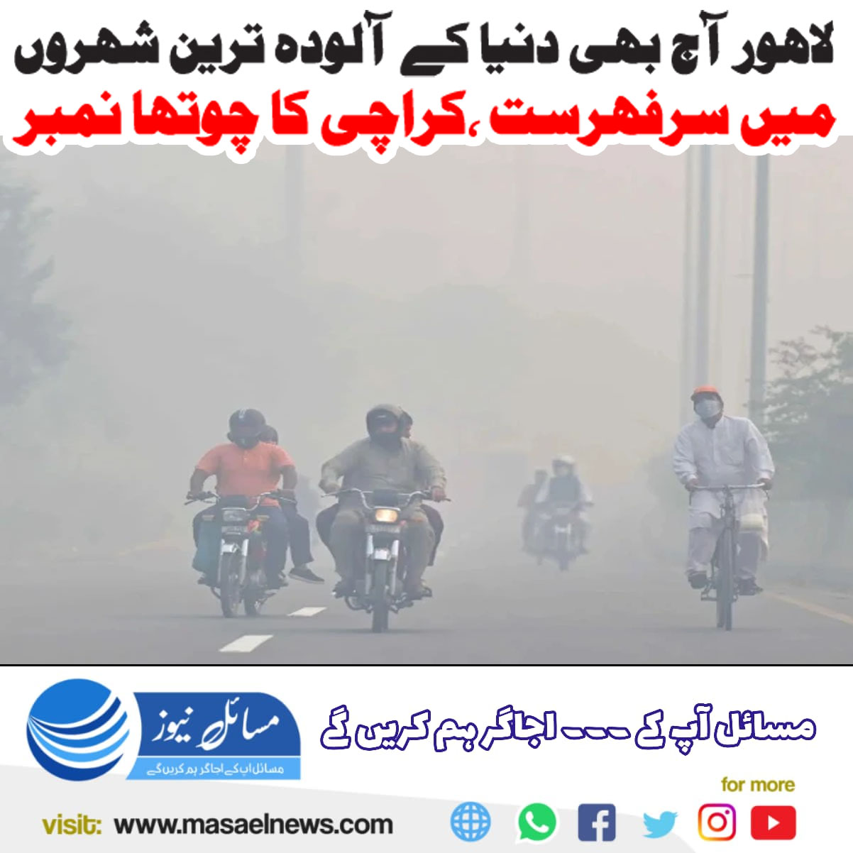 کراچی(مسائل نیوز)دنیا کے آلودہ ترین شہروں کی فہرست میں لاہور ایک مرتبہ پھر پہلے نمبر پر آگیا جبکہ ملک کا سب سے بڑا شہر کراچی چوتھے نمبر پر ہے۔