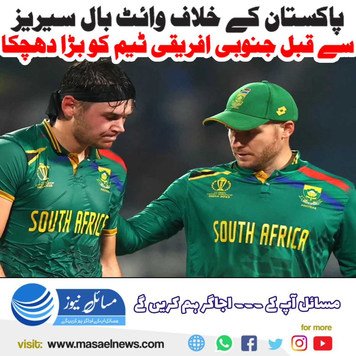 پاکستان کیخلاف وائٹ بال سیریز سے قبل جنوبی افریقی ٹیم کو بڑا دھچکا
