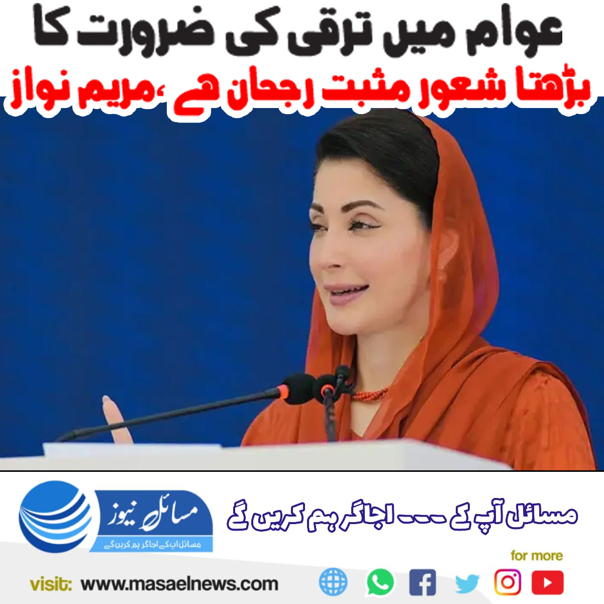 عوام میں ترقی کی ضرورت کا بڑھتا شعور مثبت رجحان ہے: مریم نواز