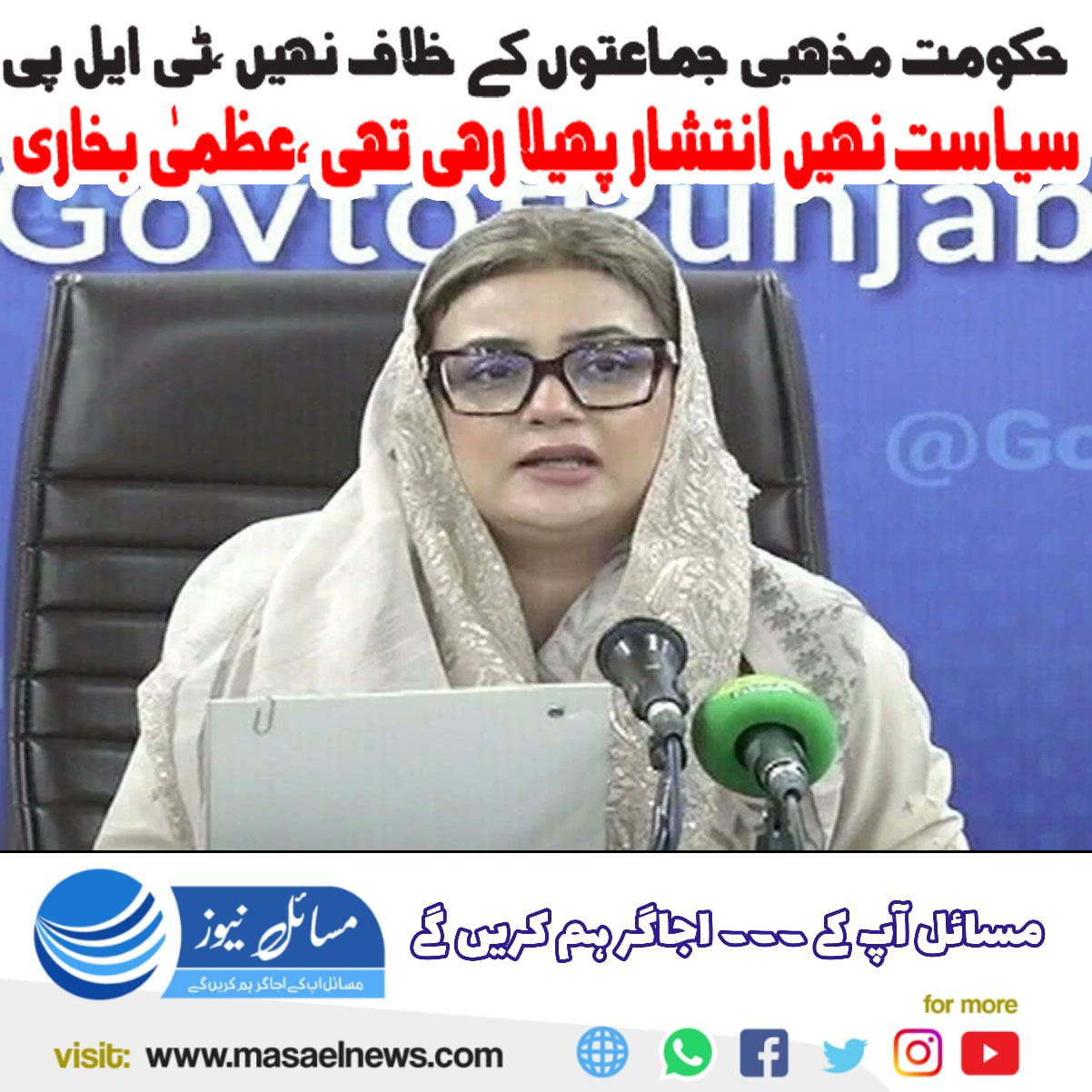 نجی ٹی وی کے پروگرام میں گفتگو کرتے ہوئے عظمیٰ بخاری نے واضح کیا کہ حکومت کسی مذہبی تنظیم یا جماعت کے خلاف نہیں ہے بلکہ اس مخصوص ذہنیت کے خلاف اقدامات کر رہی ہے جو ملک میں انتشار کا سبب بن رہی ہے۔