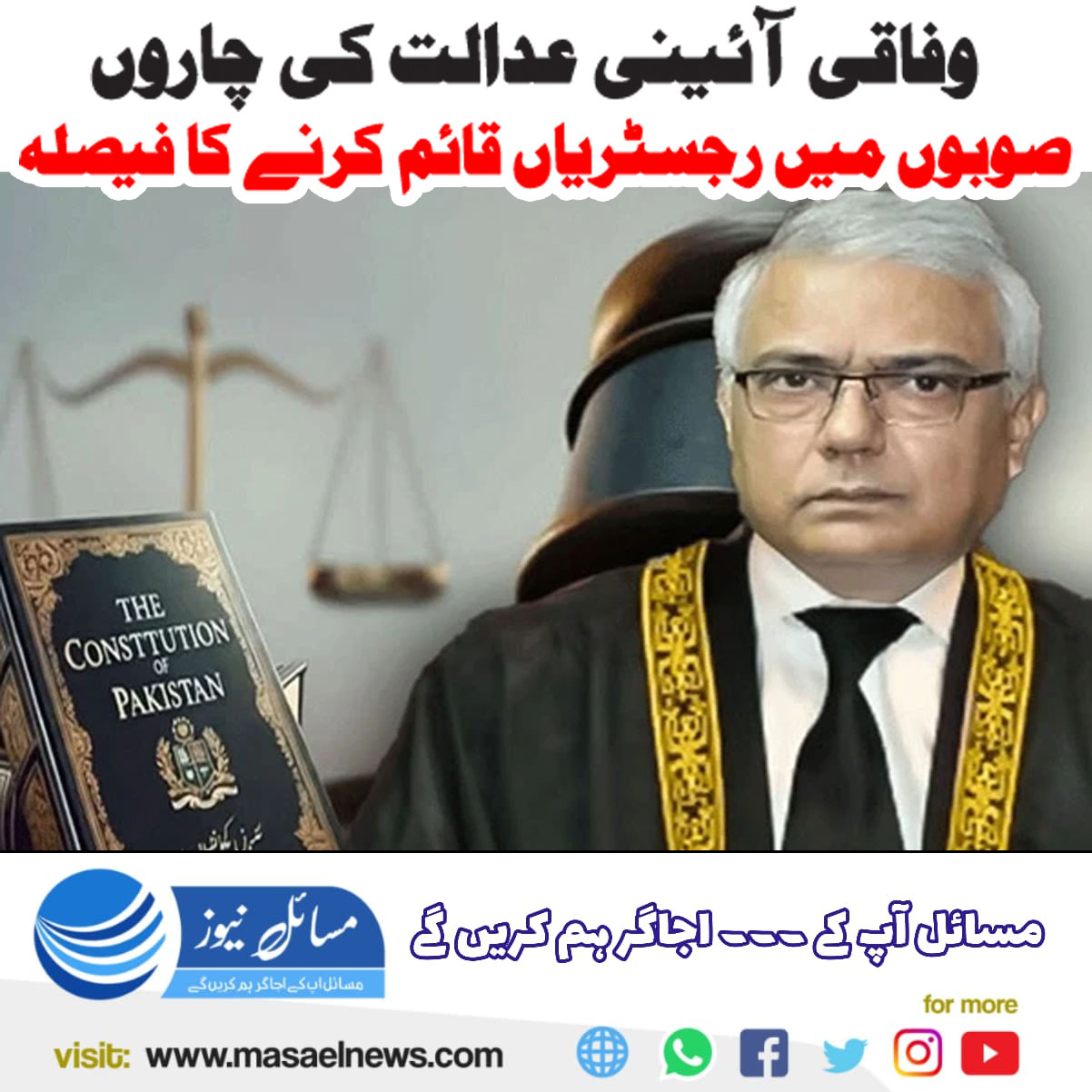 وفاقی آئینی عدالت کی چاروں صوبوں میں رجسٹریاں قائم کرنے کا فیصلہ