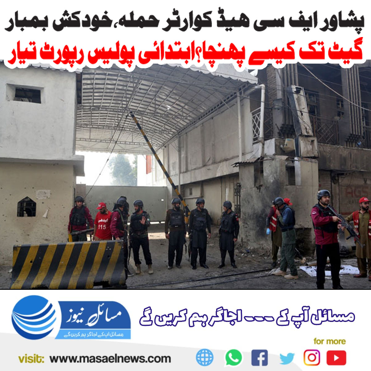 پشاور(مسائل نیوز)پشاور میں فیڈرل کانسٹیبلری ہیڈ کوارٹر پر ہونے والے خودکش حملے کی ابتدائی رپورٹ تیار کر لی گئی۔