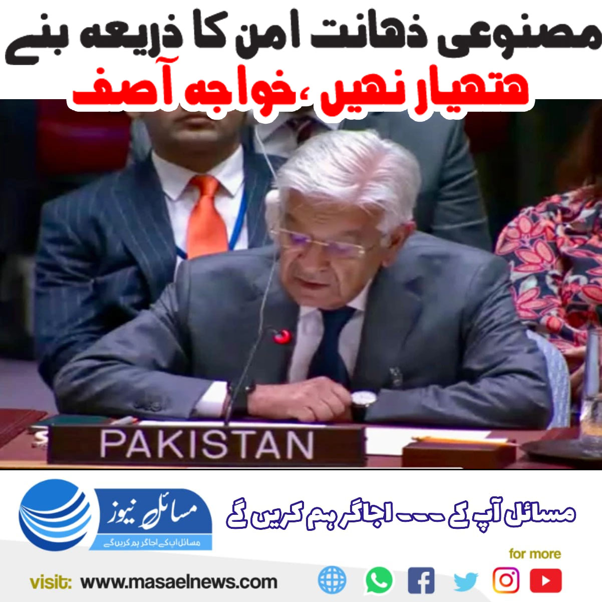 نیویارک(مسائل نیوز)اقوام متحدہ کی سلامتی کونسل میں “مصنوعی ذہانت اور بین الاقوامی امن و سلامتی” کے موضوع پر ہونے والے اعلیٰ سطحی مباحثے میں خطاب کے دوران وزیر دفاع نے مصنوعی ذہانت کے عسکری استعمال پر شدید تحفظات کا اظہار کیا۔