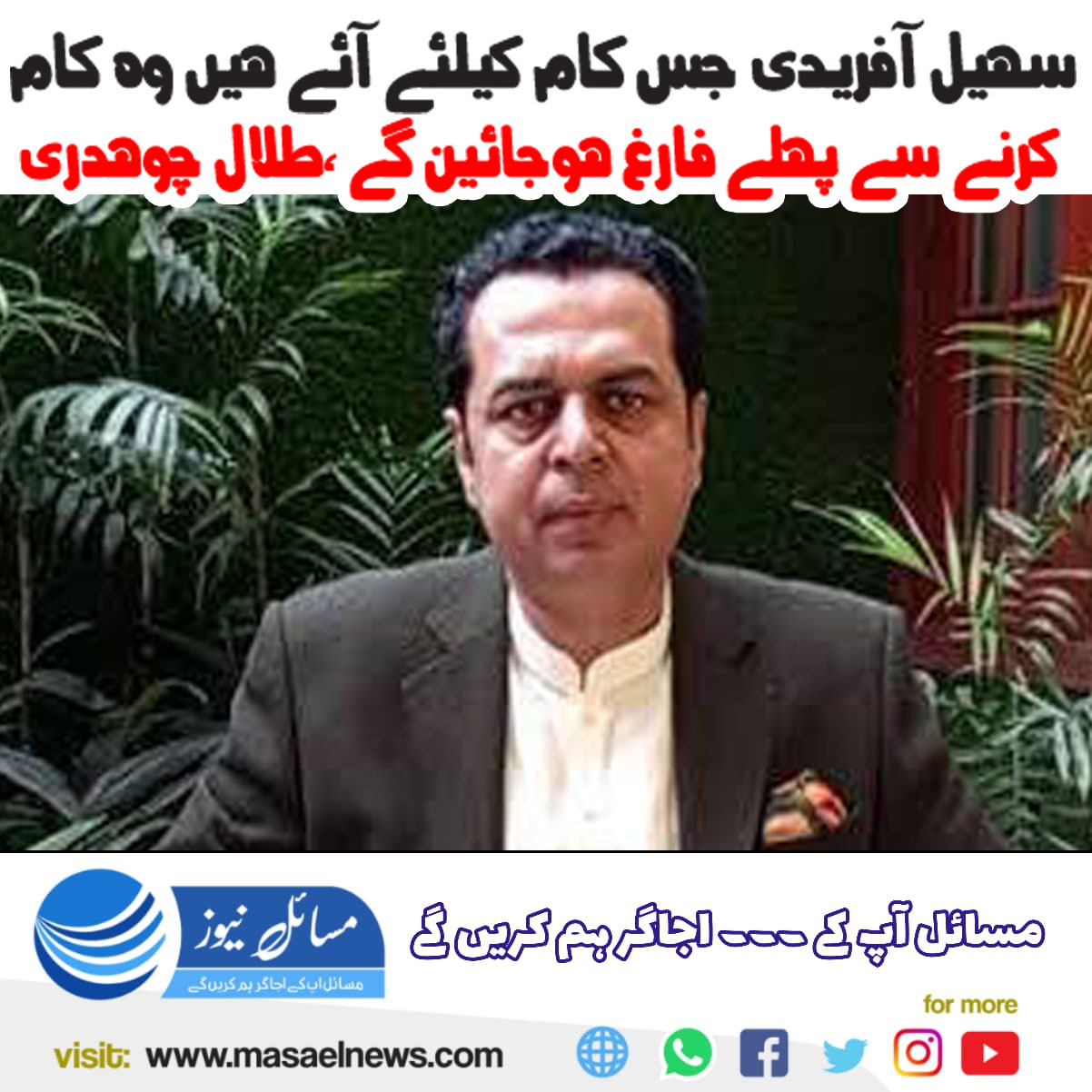 “سہیل آفریدی جس کام کے لیے آئے ہیں وہ کام کرنے سے پہلے فارغ ہو جائیں گے ” طلال چوہدری