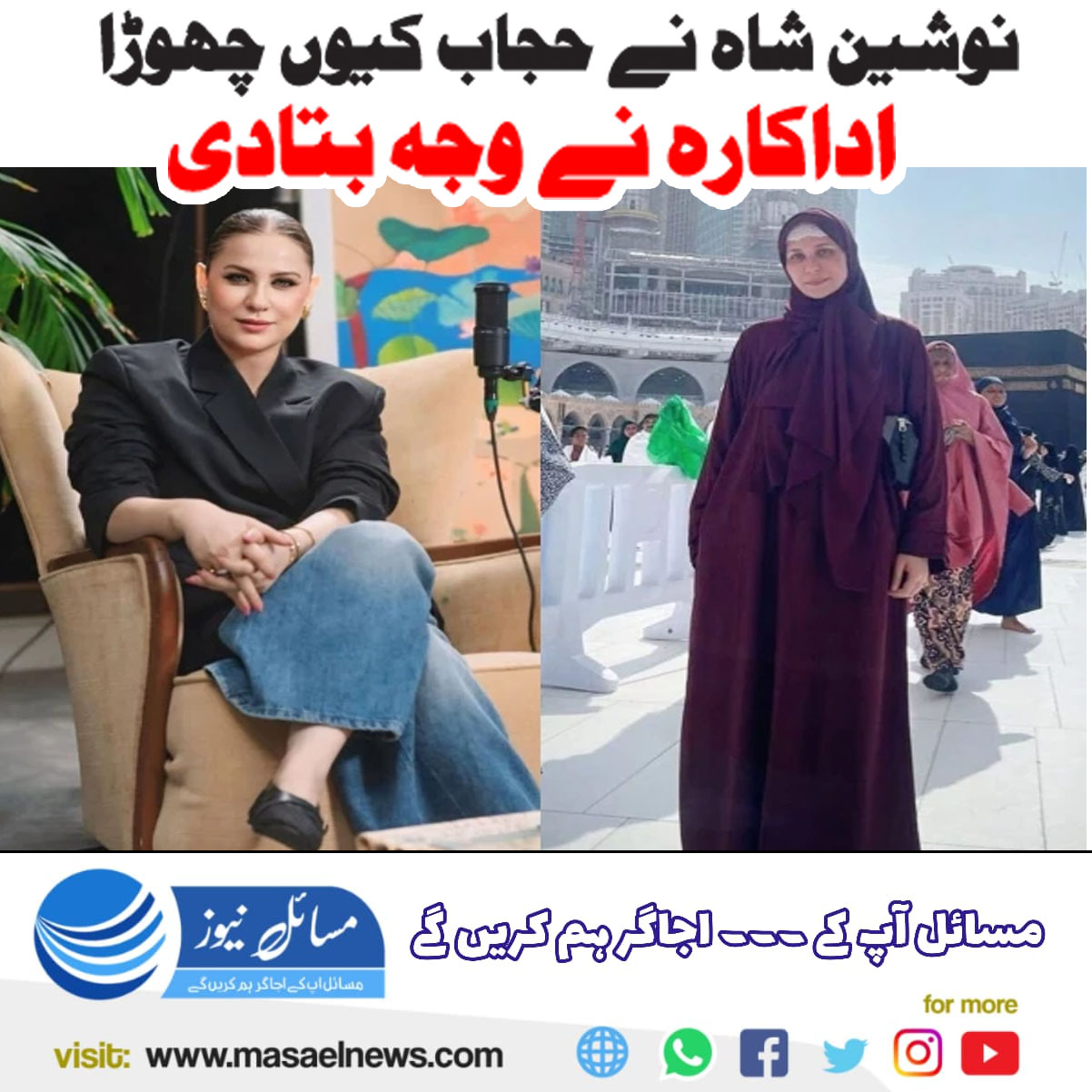 لاہور(مسائل نیوز)پاکستانی اداکارہ و ماڈل نوشین شاہ نے اپنے حجاب اتارنے کی وجہ بتادی۔