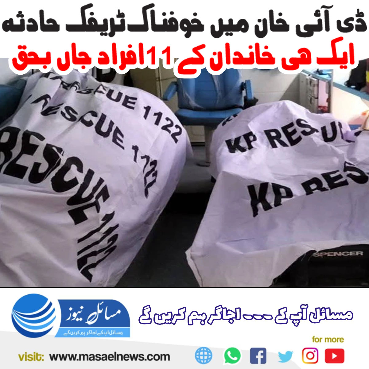 پشاور(مسائل نیوز)ڈیرہ اسماعیل خان میں خوفناک ٹریفک حادثے کے نتیجے میں ایک ہی خاندان کے 11 افراد جاں بحق ہوگئے۔