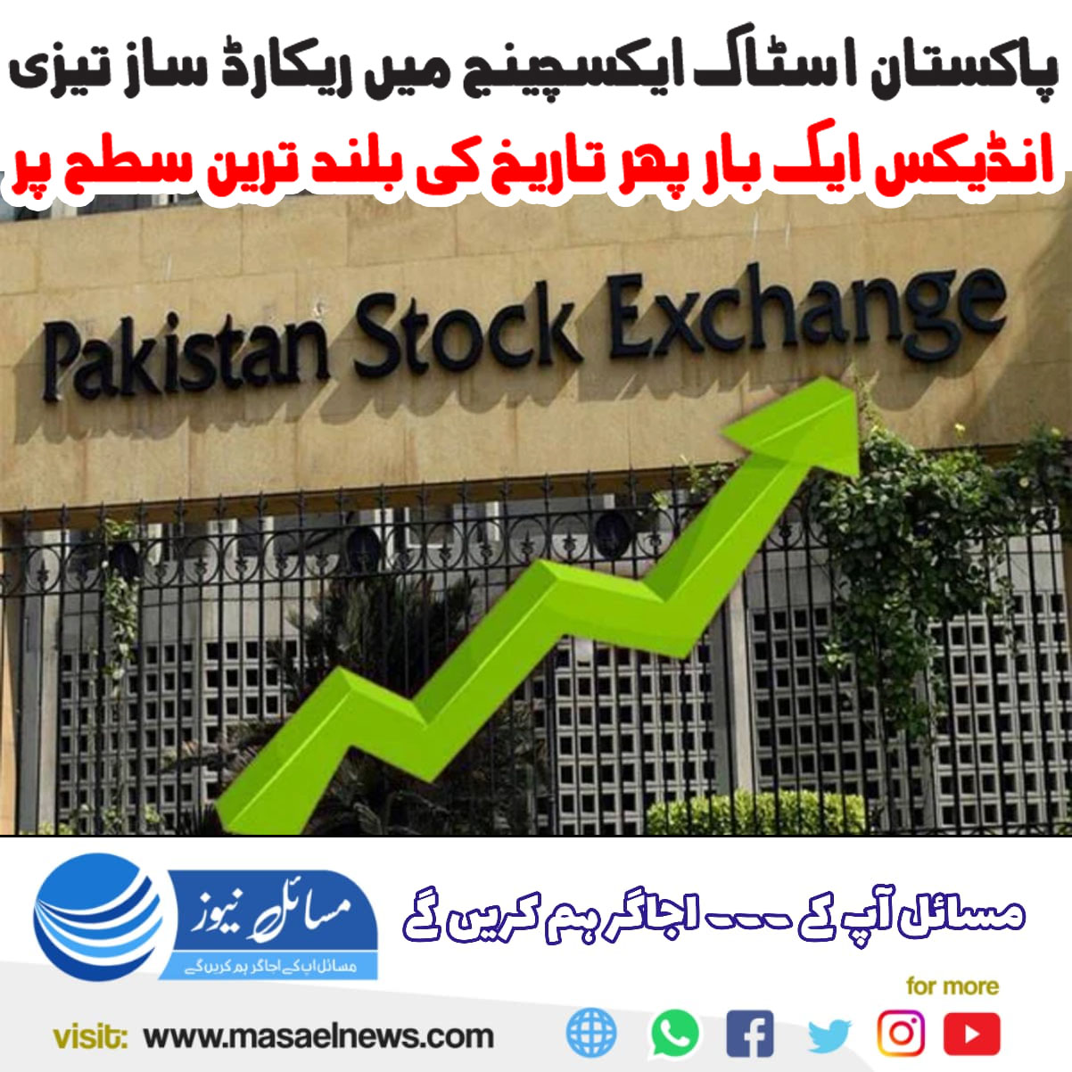کراچی(مسائل نیوز)پاکستان اسٹاک ایکسچینج میں آج پھر ریکارڈ ساز تیزی دیکھی جا رہی ہے، جس کے نتیجے میں انڈیکس تاریخ کی بلند ترین سطح پر پہنچ گیا ہے۔