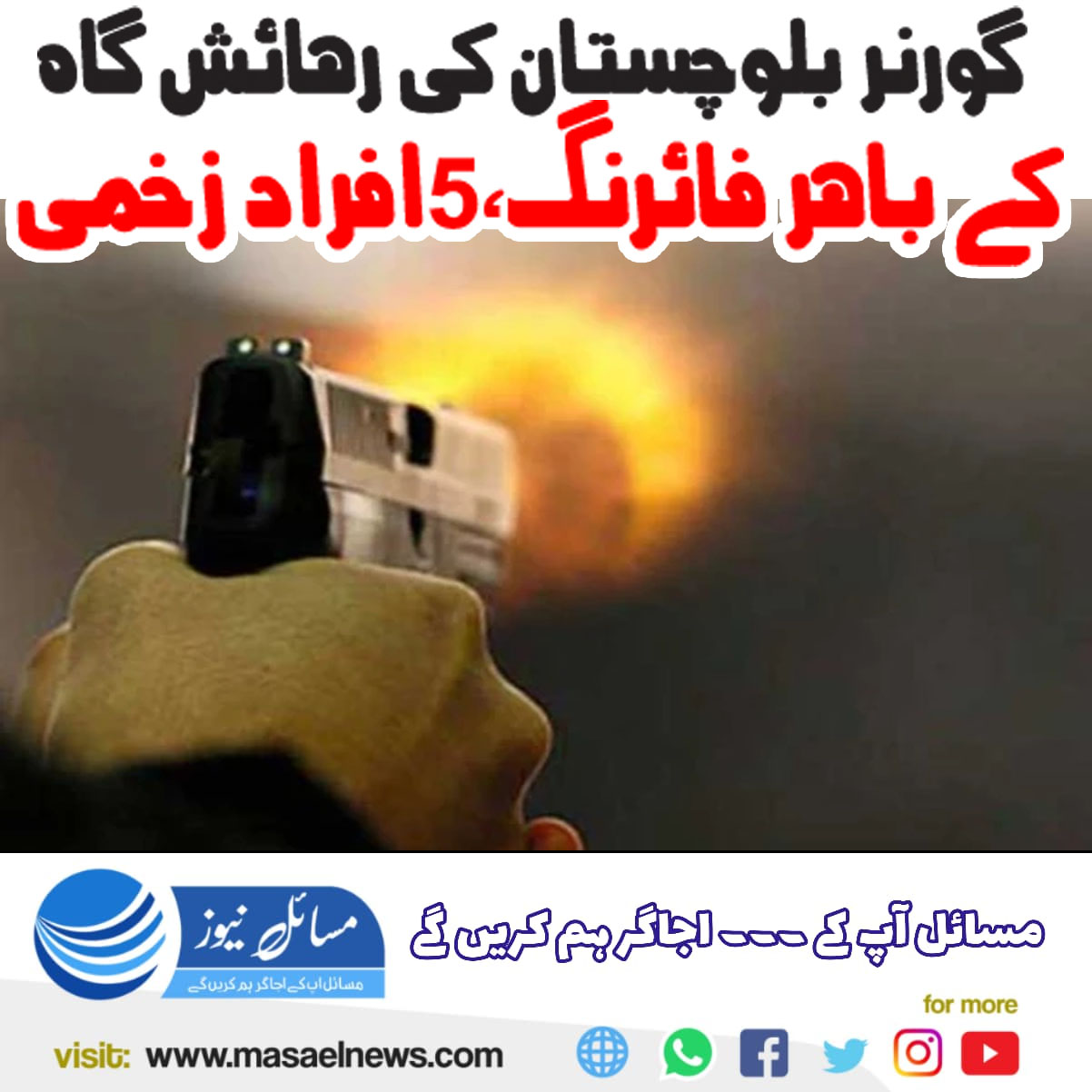 کوئٹہ(مسائل نیوز)ژوب میں گورنر بلوچستان کی رہائشگاہ کے باہرفائرنگ کے نتیجے میں 5افراد زخمی ہوگئے،